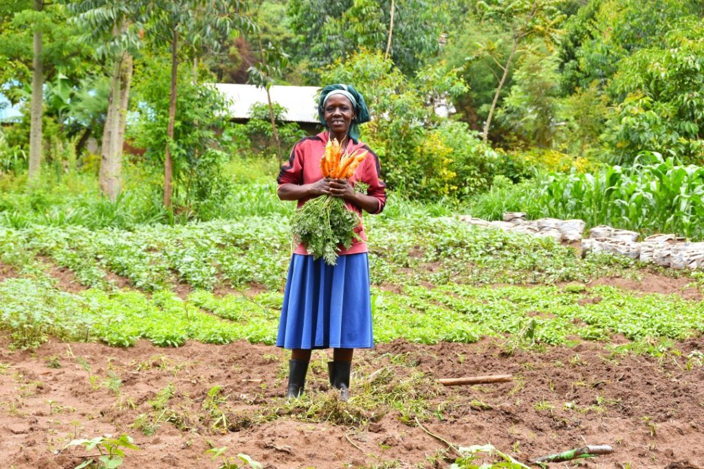 Her lush green farm filled with maize, different varieties of vegetables, carrots, and beans among other crops is indeed a true testimony of the much impact UKR agriculture program has had on her life. She now has plenty of vegetables and sells some to the locals which helps her get money to cater for her daily expenses and needs.